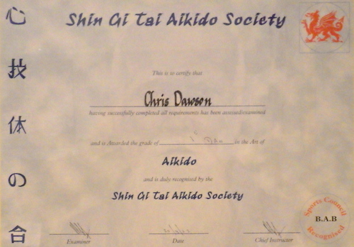 Chris holds a first dan black belt in Aikido and a brown belt (1st Kyu) in Shotokan Karate.